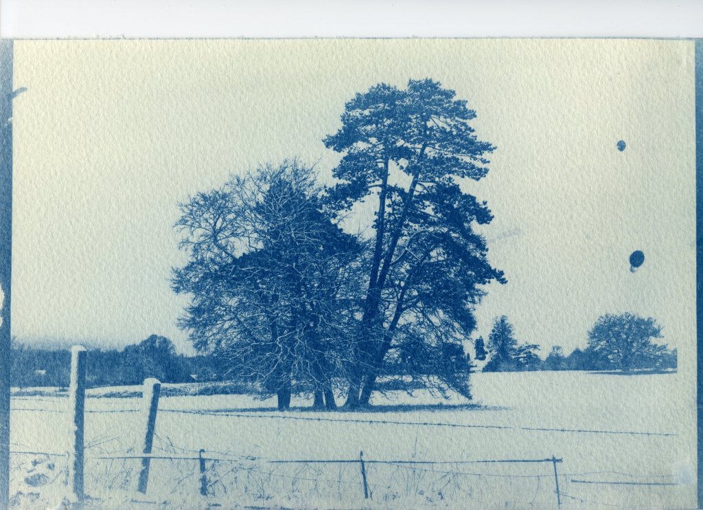 So here we are 6 months on. I had intended this blog to be a fairly comprehensive record of my work as it was for my OCA courses but whilst I want to get to my current position, it would take to long to backtrack and put it all in. So, I will spend the next few posts sampling and recording highlights and take it from there. In the meantime to go back to January, this is a favourite clump of trees at the bottom of our lane, photographed in the snow in January, converted to a black and white negative and printed onto transparency film.